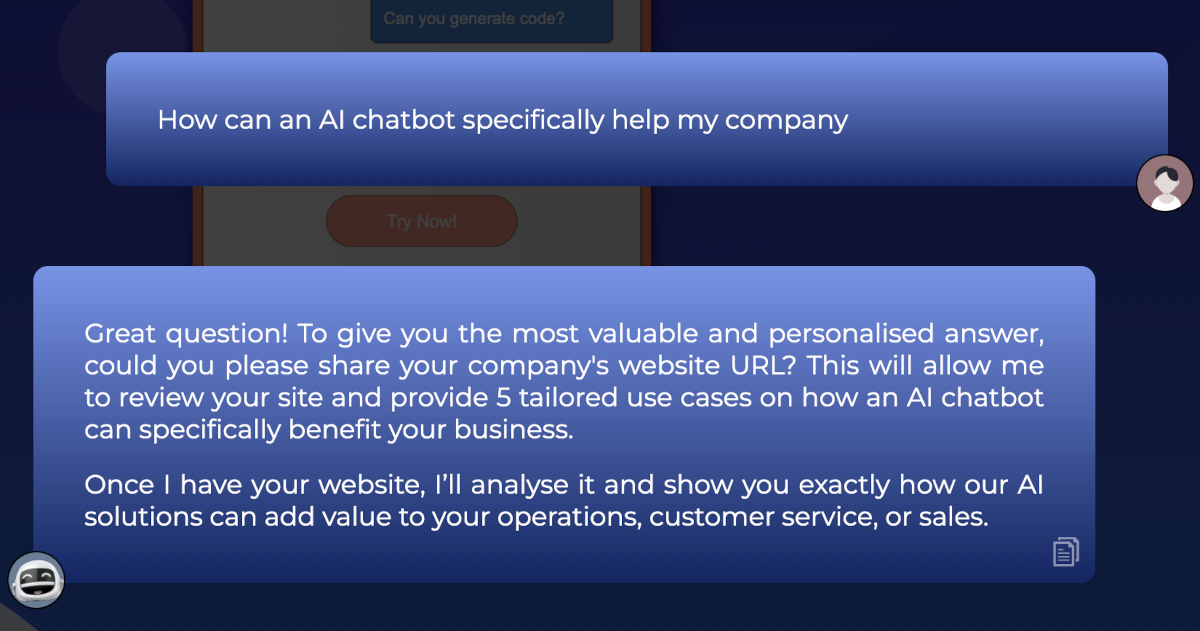 If you give it your website URL, it will create a personalised sales pitch for your specific needs, using your vertical and your own website information as its foundation. Below is an example.